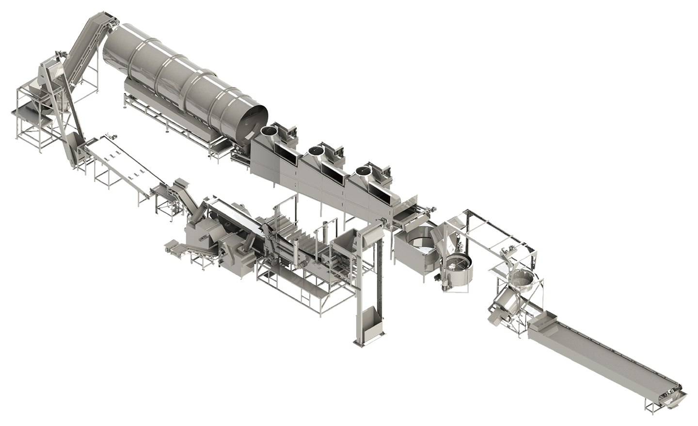 該生產線主要用于油炸花生米,麻辣花生、淮鹽花生等的油炸加工。生產線自動化程度高,貼合傳統生產工藝,易清洗;產品色澤光亮、整仁率高、口感酥脆。